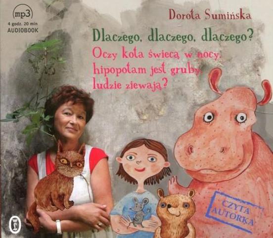 Dlaczego, dlaczego, dlaczego? : oczy kota świecą w nocy, hipopotam jest gruby, ludzie ziewają? / Dorota Sumińska. - [Kraków] : Wydawnictwo Literackie ; [Warszawa] : Biblioteka Akustyczna, copyright 2019. - 1 płyta audio CD (4 godz. 20 min) : digital, stereo. ; 12 cm.