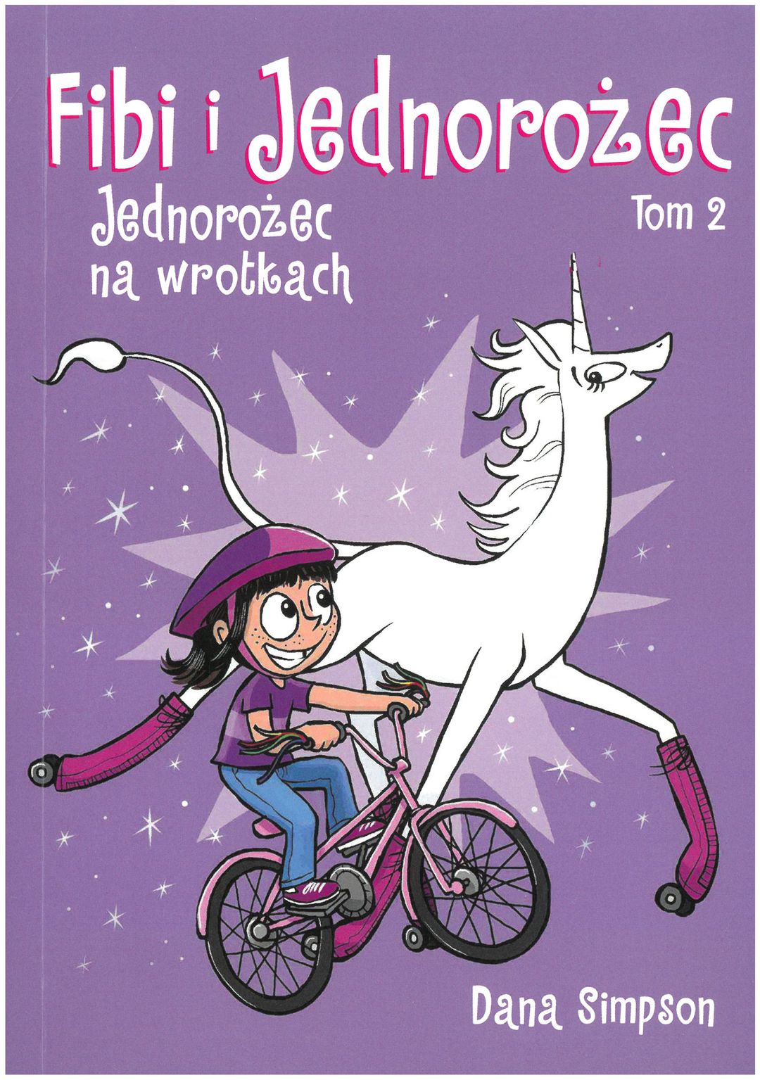 Skromna Fibi nie jest zbyt popularna w szkole, ale nie przeszkadza jej to mieć wspaniałe przygody! Dzięki znajomości z władającą czarami Marigold - piękną przedstawicielką rodzaju jednorożców - jej życie jest niezwykłe, a bohaterka coraz bardziej zaczyna wierzyć w siebie. Czy to szykując się do konkursu z gramatyki, czy startując w castingu do szkolnego przedstawienia, czy rywalizując z podstępna koleżanką Dakotą, Fibi nie traci pogody ducha. We wszystkim pomaga jej niezawodna Marigold. Co więcej, czarodziejska istota poznaje dziewczynkę z innymi jednorożcami i zabiera ją do równoległej krainy swojej rasy... Dana Simpson zyskała światową sławę serią o Fibi, za którą otrzymała dwie ważne amerykańskie nagrody za twórczość dla dzieci. Jest także autorką cykli przeznaczonych przede wszystkim dla dorosłych czytelników: Ozzy and Millie, I Drew This i Raine Dog.
