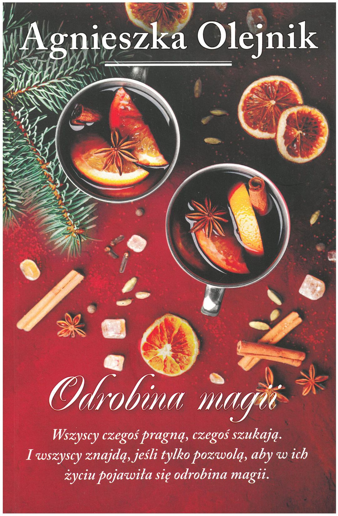 Czerwone dachy powolutku przykrywa śnieg. Księżyc zagląda do okien mieszkańcom. Oto Zosia, która właśnie straciła miłość swego życia i pragnie ją odzyskać. Oto Klara, tkwiąca w nieudanym związku. Tu zaś śpi Kosma, marzący o debiucie literackim. Pani Jadzia krząta się jeszcze w kuchni i zerka na telefon. Może syn wreszcie zadzwoni, może zapowie się na święta. A syn? Syn, który po sześciu latach nadal nie pogodził się ze śmiercią żony, pragnie tylko, aby matka zostawiła go w spokoju. Wszyscy czegoś pragną, czegoś szukają. I wszyscy znajdą, jeśli tylko pozwolą, aby w ich życiu pojawiła się odrobina magii. No tak, jest jeszcze kot. Kot też marzy. O czymś, co dałoby się zjeść, o ciepłym kąciku, gdzie mógłby po prostu spać i jeszcze… żeby to białe, mokre paskudztwo przestało wreszcie lecieć z nieba. (https://lubimyczytac.pl/ksiazka/4941684/odrobina-magii)