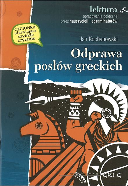 Odprawa posłów greckich jest tragedią renesansową Jana Kochanowskiego, która zapisała się w historii literatury, jako pierwszy dramat sceniczny napisany w języku polskim. Premiera sztuki miała miejsce w 1578 roku w obecności króla Stefana Batorego. Wierny poetyce renesansowej, Jan Kochanowski odwołuje się w swoim utworze do tradycji antycznej, zarówno pod względem formalnym, jak i pod względem poruszanej tematyki. Akcja sztuki rozgrywa się w mitycznych czasach wojny trojańskiej. Autor opisuje epizod poprzedzający wybuch wojny, kiedy do Troi przybywają posłowie greccy, Ulisses i Menelaos, z żądaniem wydania porwanej przez Parysa pięknej Heleny, żony Menelaosa. O losach Troi decyduje rozstrzygnięcie sporu pomiędzy dążącym do zaspokojenia własnych pragnień Parysem, a kierującym się dobrem państwa Antenorem. Antyczna sceneria, w której Kochanowski usytuował swoją tragedię, jest pretekstem do rozważań nad wagą postaw etycznych wobec spraw państwowych we współczesnej mu Polsce. [Wydawnictwo Greg, 2020]
