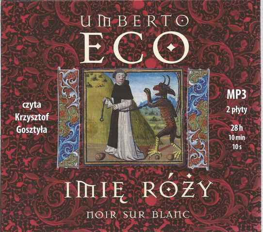 Imię róży / Umberto Eco ; przekład Adam Szymanowski. - Warszawa : Noir sur Blanc, 2009. - 2 płyty audio CD (28 godz. 10 min 10 s.) : digital, stereo ; 12 cm.
