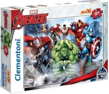 Avengers Maxi. - Gdynia : Trefl, [2022]. - 104 puzzli : tektura, kolor ; w pudełku 40x28x6 cm.