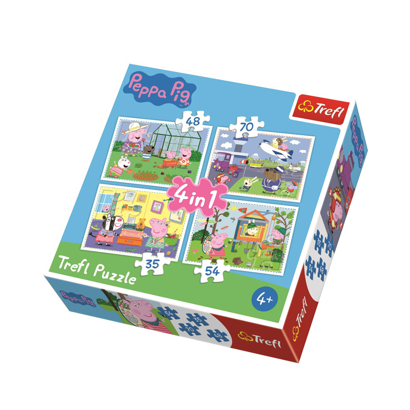 Peppa Pig puzzle 4 w 1. - Gdynia : Trefl, [2014]. - 71 puzzli : tektura, kolor ; w pudełku 28x28x6 cm.