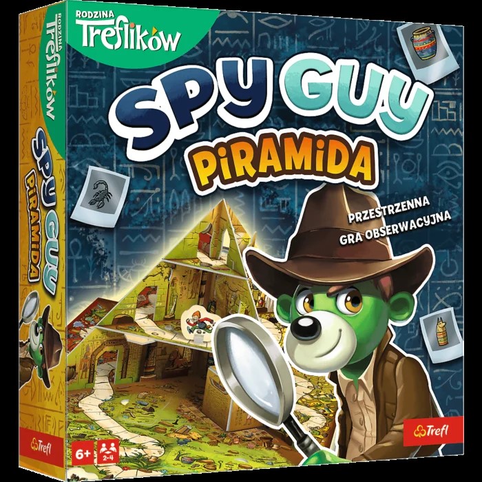 Spy Guy Piramida to odsłona kooperacyjnej gry obserwacyjnej z niesamowitą, przestrzenną planszą, wyposażoną w ruchome elementy. Spy Guy znów ściga przebiegłego Moritza, tym razem próbując udaremnić kradzież kosztowności ukrytych w piramidzie. Tu liczy się spostrzegawczość i ścisła współpraca między graczami. W trakcie rozgrywki będziecie musieli manipulować przestrzenną planszą, aby odnaleźć ukryte poszlaki. Może okazać się to trudniejsze niż Wam się wydaje - odkrywając jedną wskazówkę, zasłaniacie sobie widok na inne. [Opis od wydawcy].