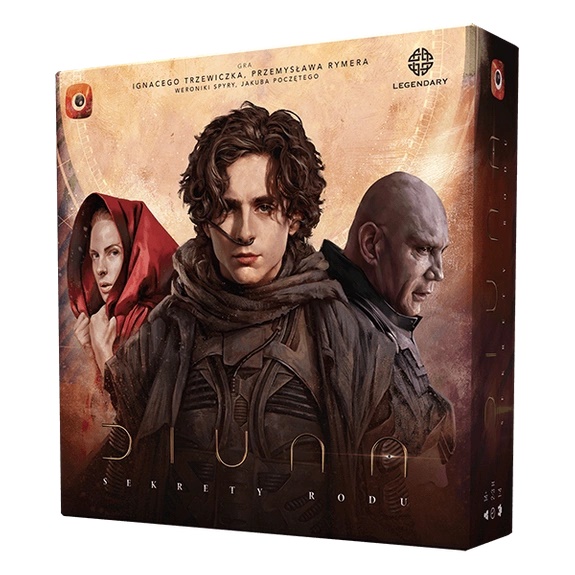 Diuna : sekrety rodu : gra Ignacego Trzewiczka, Przemysława Rymera, Weroniki Spyry, Jakuba Poczętego. - Knurów : Portal Games, copyright 2021. - 1 gra (wiele elementów) : tektura, plastik, kolor ; w pudełku 30x30x8 cm + instrukcja.